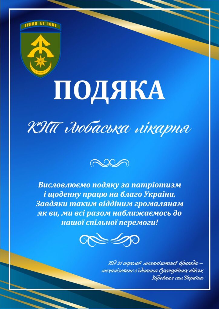 “І знову передають наші Захисники слова подяки колективу Любарської Лікарні за таку жадану допомогу та підтримку”, – повідомляють у соцмережі волонтери.